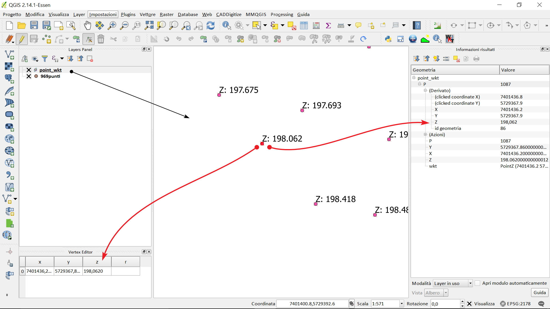 in output otterremmo: shapefile PointZ (quindi un layer 3D).