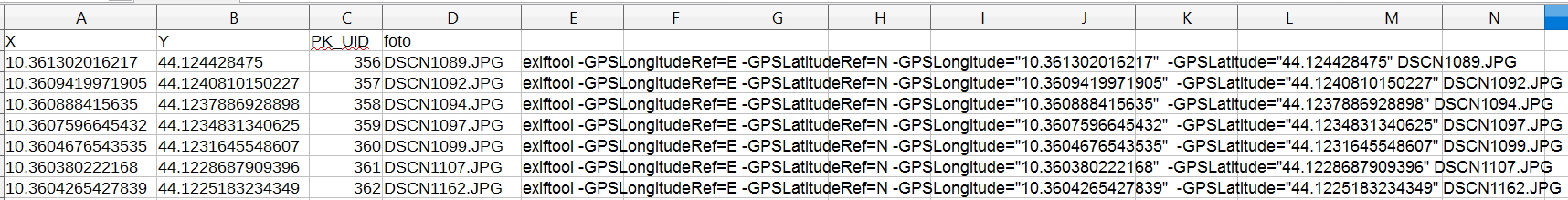 da QGIS esporto, in formato CSV, i punti e il nome della foto, ottenendo:
