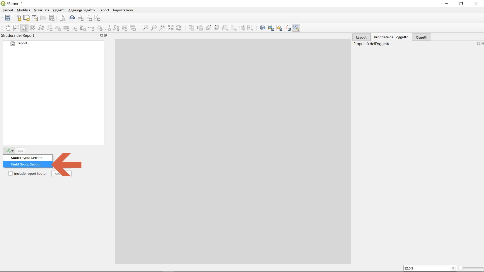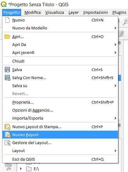 Menu progetto | Nuovo report