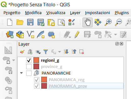 • duplichiamo il layer regioni due volte perché ci servirà come panoramica per le regioni e per le province;