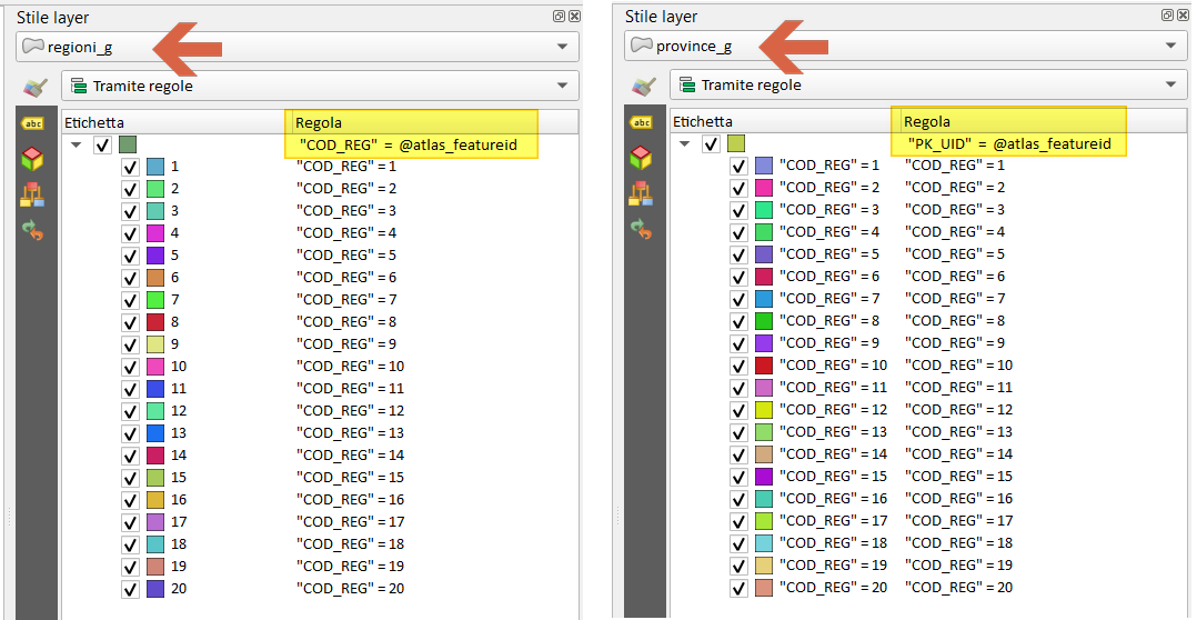 EDIT3: una alternativa all’uso della variabile @atlas_featureid è l’uso della variabile @atlas_feature assieme alla funzione attribute