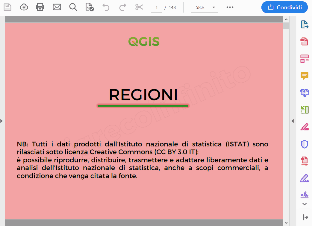 Il miglior modo per spiegare i report è facendo un esempio: realizzare una stampa in serie utilizzando due vettore di copertura: le regioni ISTAT e le province ISTAT (avrei potuto aggiungere un terzo vettore con i comuni ISTAT) ed esportare in PDF.