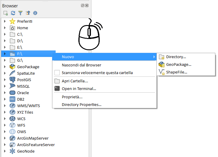 Uno degli strumenti che preferisco ed uso molto in QGIS è il browser panel: uno strumento che ci permette di gestire differenti sorgenti dati GIS.