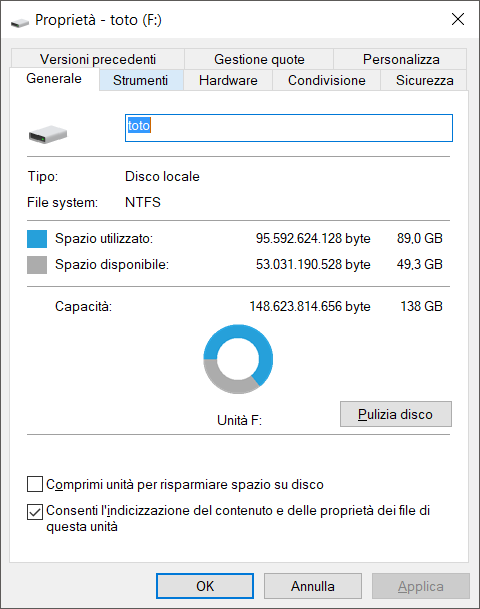 selezionando una cartella del nostro disco: