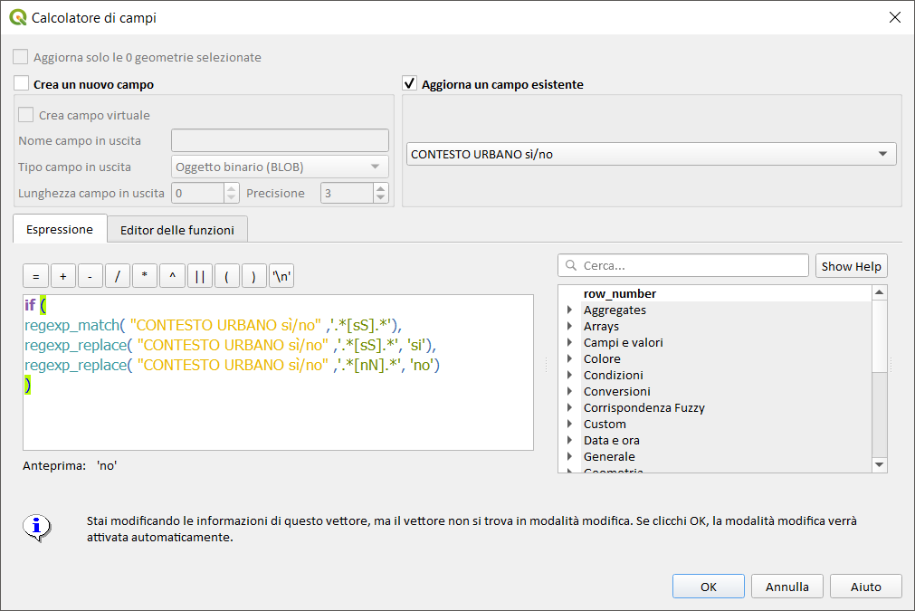 Come correggere questi errori usando il calcolatore di campi di QGIS e le espressioni regolari