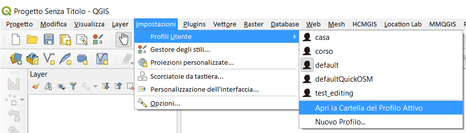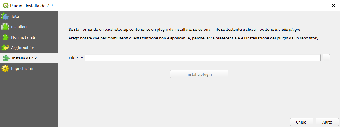 Con la seconda feature basta unzippare il pacchetto ZIP all’interno della cartella:C:\Users\nomeUtente\AppData\Roaming\QGIS\QGIS3\profiles\default\python\plugins; cartella facilmente raggiungibile dal menu: Impostazioni|Profilo utente|Apri la cartella del profilo Attivo: