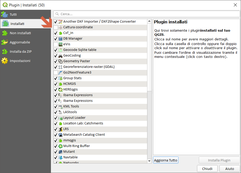 In questo secondo caso, il plugin risulterà installato ma non attivato, quindi, occorre aprire il Gestore dei plugin e mettere lo spunto per attivarlo.