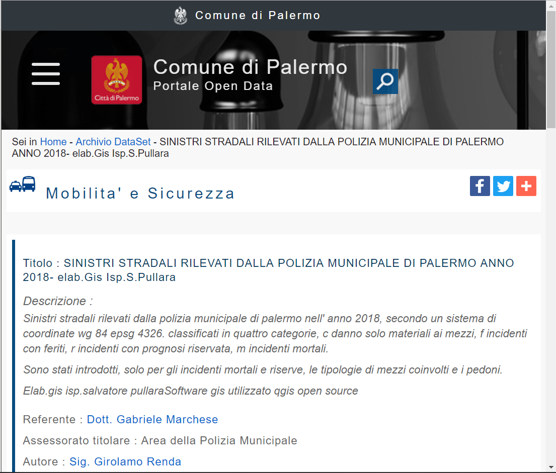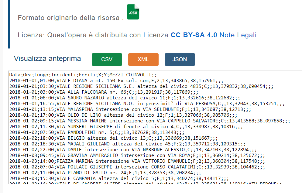 Il Portale Open Data del Comune di Palermo ha pubblicato, con licenza