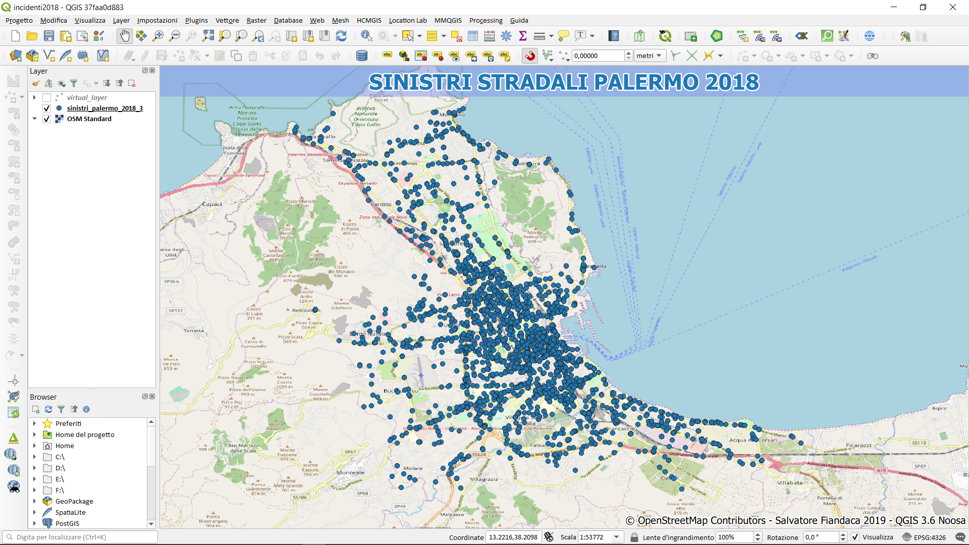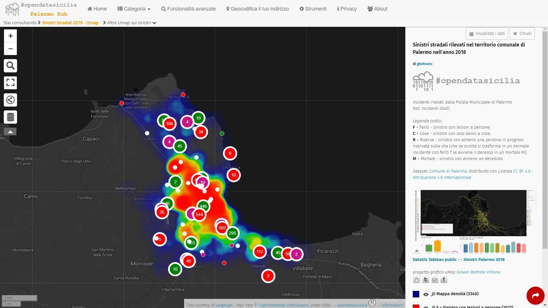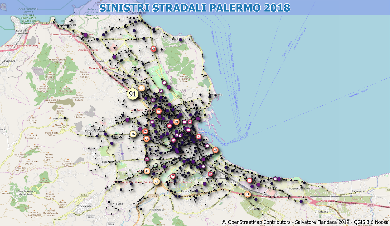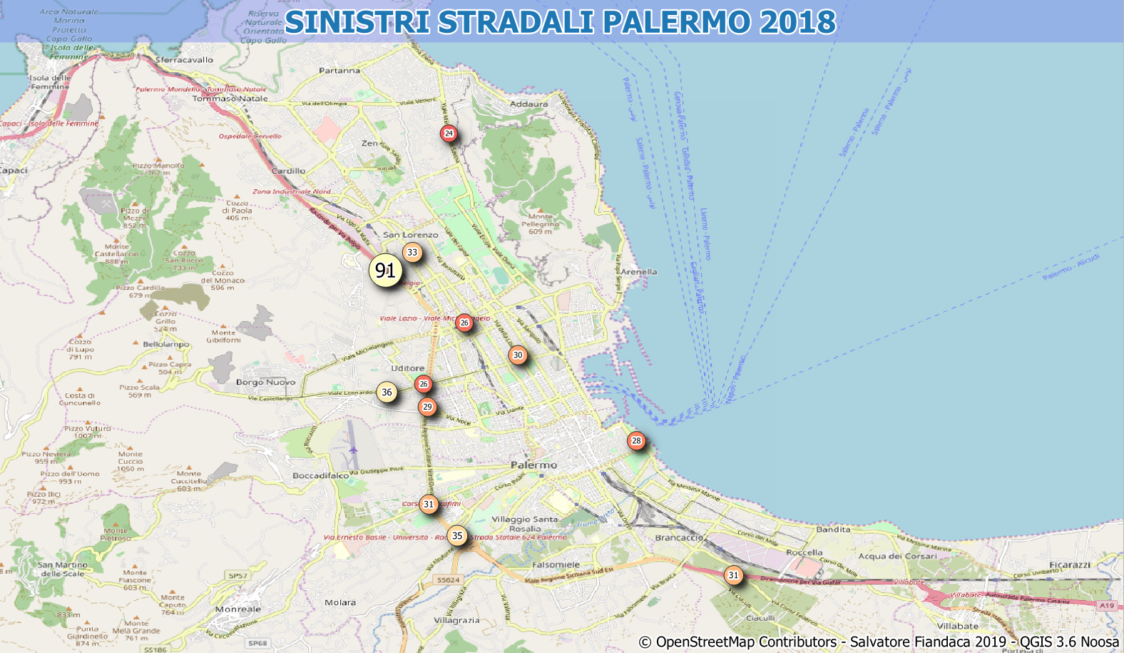 CC BY-SA 4.0, i SINISTRI STRADALI RILEVATI DALLA POLIZIA MUNICIPALE DI PALERMO ANNO 2018- elab.Gis Isp.S.Pullara.