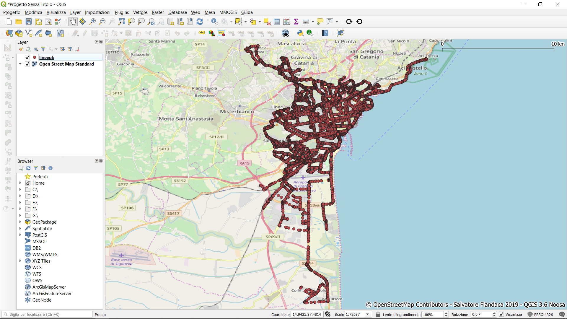 - latitude e longitude: coordinate dei punti che diventeranno vertici delle linee