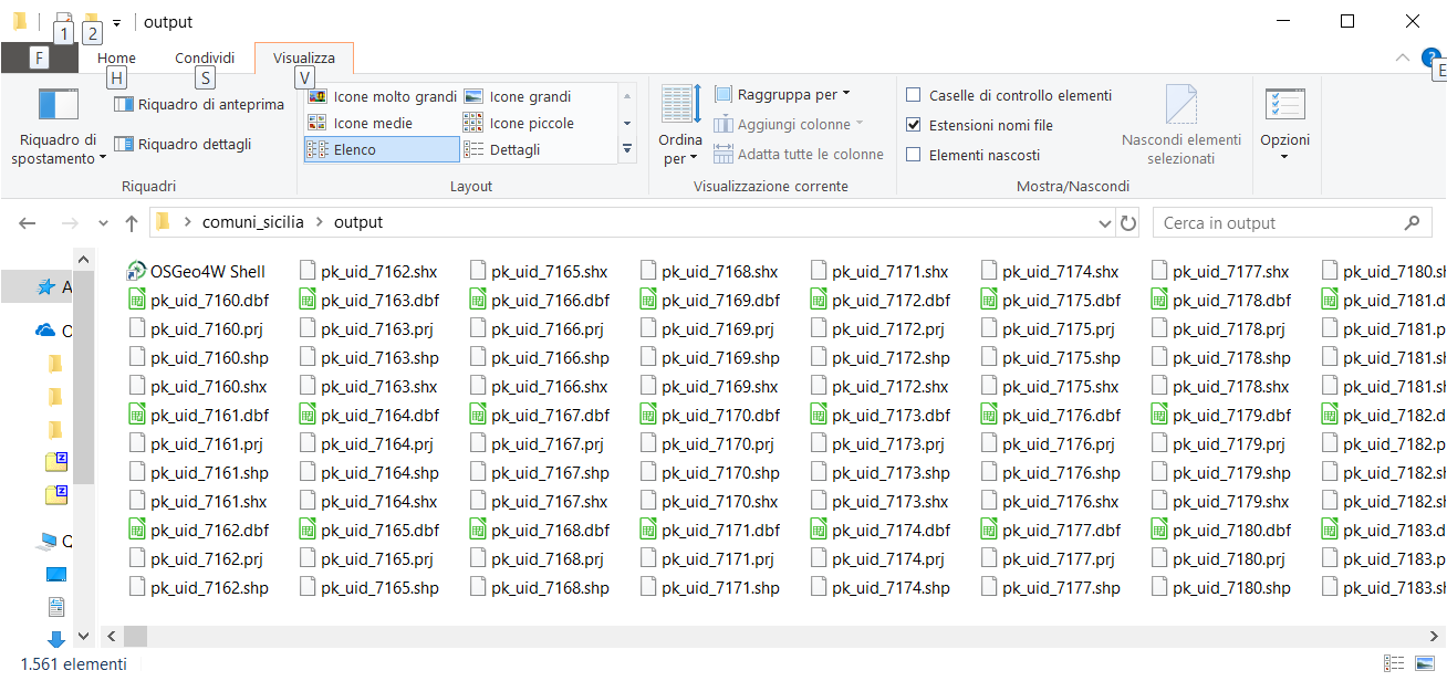 Cartella con 390 shapefile, uno per ogni Comune della Regione Siciliana: