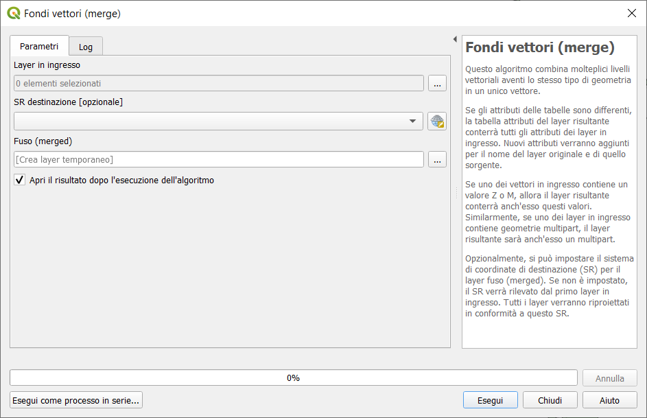 Permette di fondere i vettori caricati in QGIS oppure dal File Sistem
