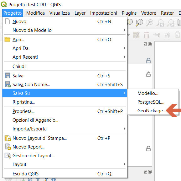 Settima: Salvare progetto nel GeoPackage