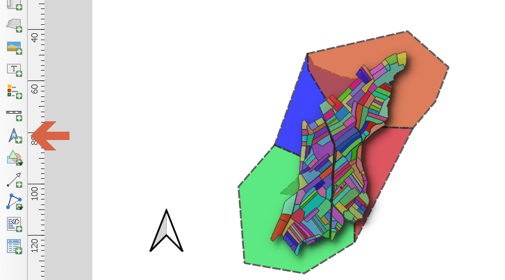 A partire dalla QGIS 3.8 Zanzibar è possibile, con un clic, inserire la freccia del Nord nel compositore di stampe.