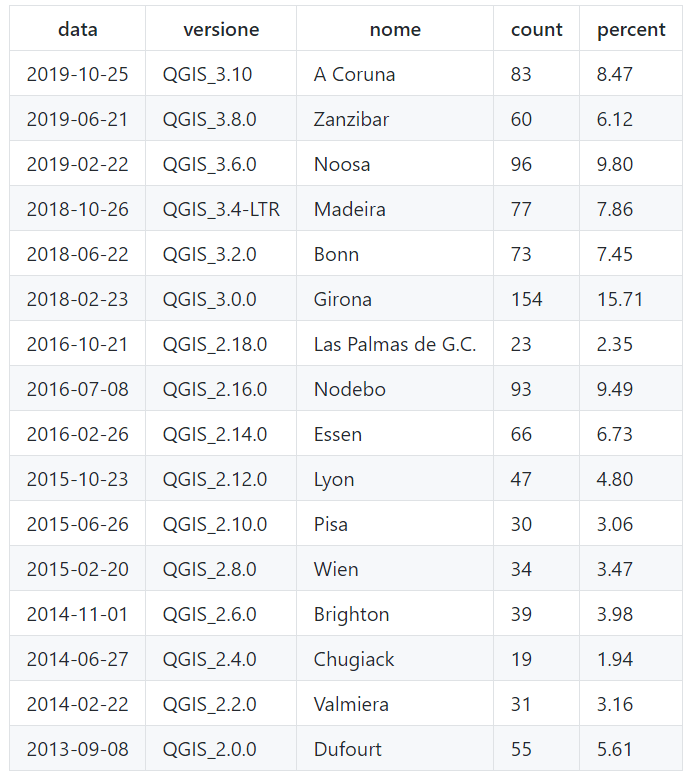 Il 28 ottobre 2019 è uscita la nuova versione di QGIS che diverrà la prossima LTR a febbraio 2020. Quasi tutti parlano solo delle nuove feature, in questo blog post voglio evidenziare qualcosa di diverso e di importante: i finanziatori e gli sviluppatori, oltre alle statistiche generali.