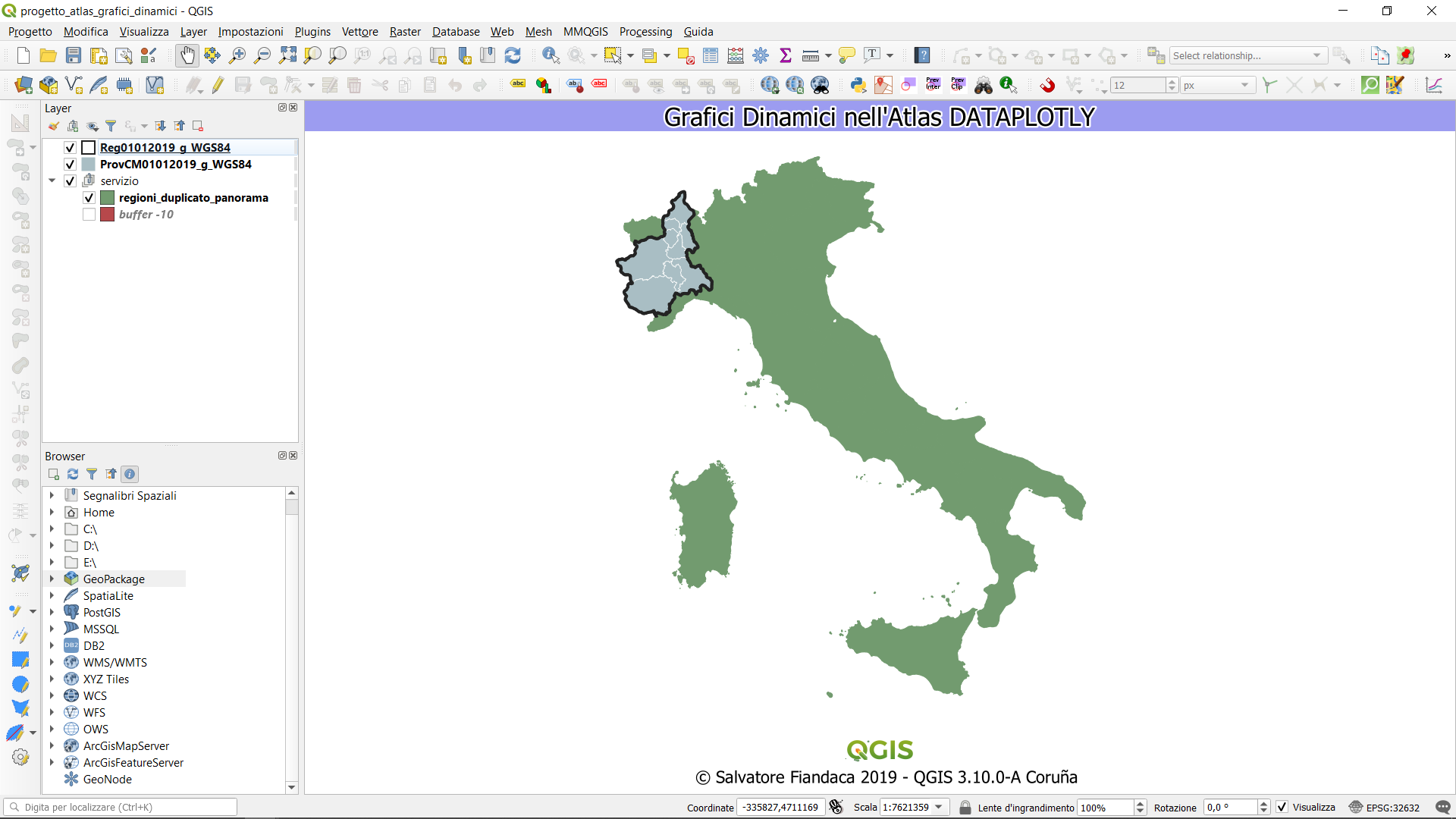 2. sulla mappa 3 creo l’atlante e fisso come vettore di copertura le regioni (in questo caso specifico le regioni con un buffer di -10 m);