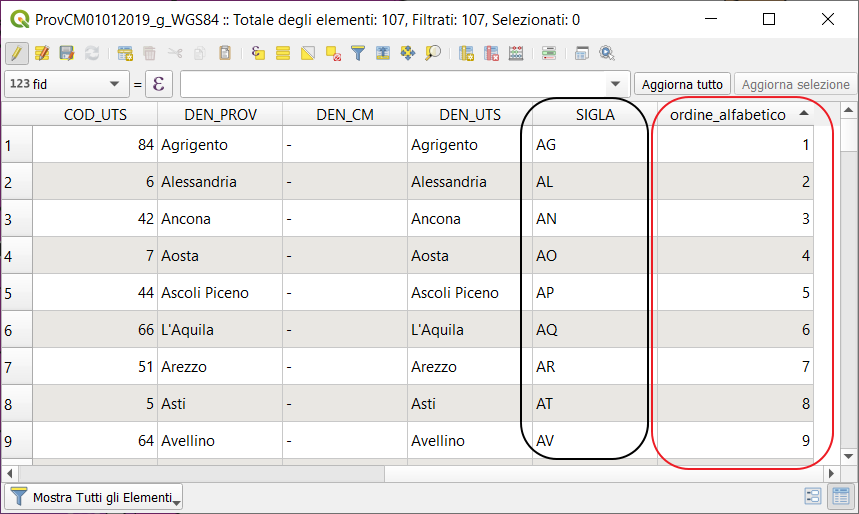 4 pensieri su “QGIS tabella attributi: ordinare usando gli array