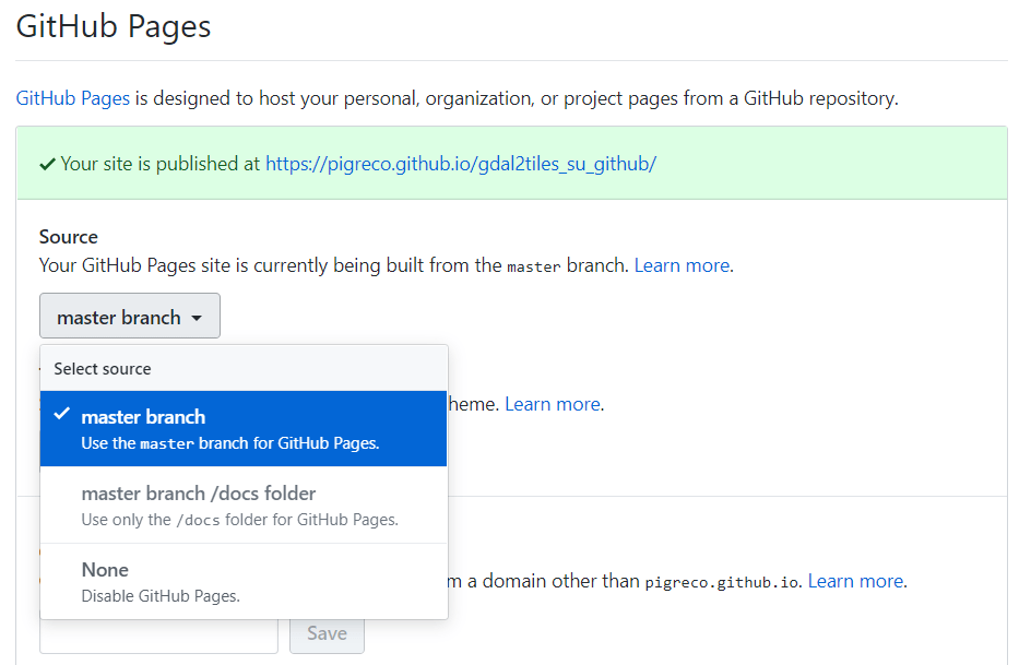 Una volta pubblicata la cartella che contiene i tasselli su un repository github, attivare le github pages: dal settings del repository