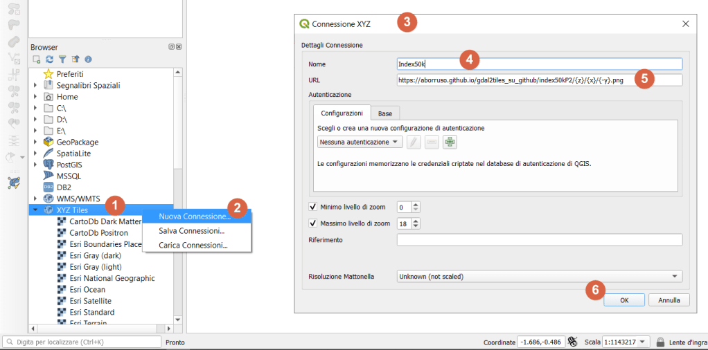 nuova Connessione XYZ Tiles con questo URL:
