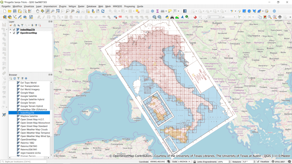 NOTE FINALI: per visualizzare il layer XYZ, caricare prima una qualsiasi mappa di sfondo (io ho usato OpenStreetMap), zoomare in Italia e poi caricare il layer.
