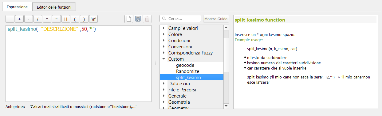 Altra soluzione, rimanendo all’interno di QGIS, è tramite pyQGIS: ho chiesto ad una amico (Giulio Fattori grazie mille) e in meno di 20 minuti ha creato questa funzione personalizzata da usare all’interno del calcolatore di campi:
