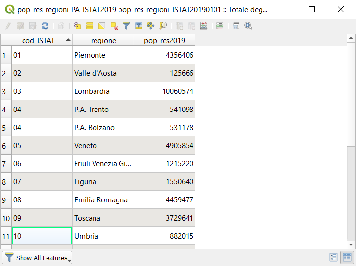 cioè, il campo cod_ISTAT viene interpretato come numerico. Questo potrebbe comportare dei problemi se volessimo, successivemente, fare una Join tabellare.
