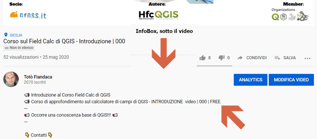 I video (privati) saranno disponibili per tutti coloro che vorranno acquistare il video corso FULL*. Non è un requisito iscriversi al mio canale Telegram, ma è fortemente consigliato per seguire lo sviluppo del corso e/o di QGIS. Tutti i video avranno una descrizione nella InfoBox e il tag FULL indicherà la possibilità di seguirlo [SOLO a pagamento].