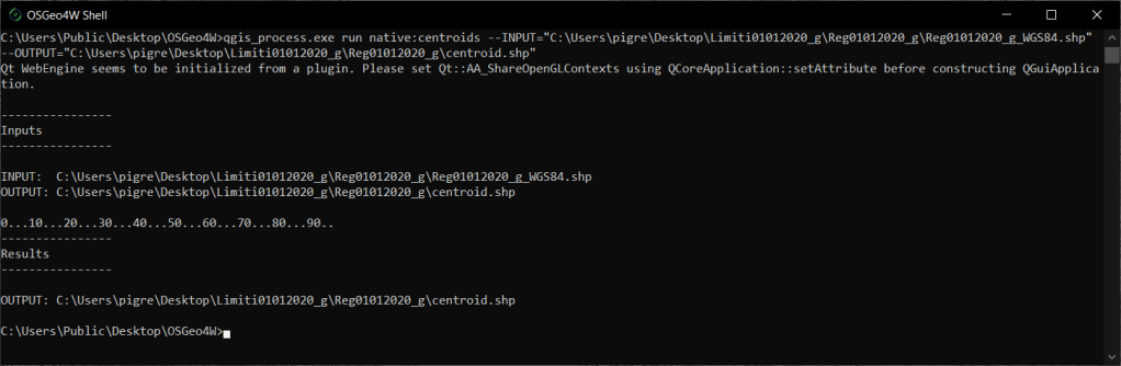 qgis_process.exe run native:centroids --INPUT="C:\OSGeo4W64\apps\qgis\bin\Reg01012020_g\Reg01012020_g_WGS84.shp" --OUTPUT="C:\OSGeo4W64\apps\qgis\bin\Reg01012020_g\centroid.shp"