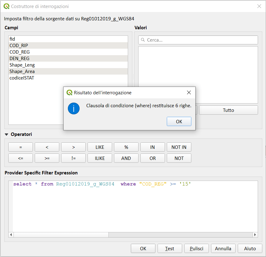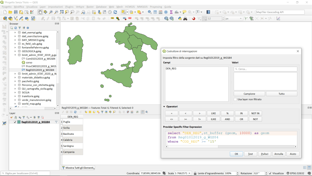 NOTE FINALI: Ho notato questo comportamento usando il plugin DB Manager e creando una query, appena aggiungevo la query alla map canvas ottenevo il risultato di sopra. La possibilità di scrivere l’intera SQL statement è presente dalla versione 3.x in poi, da prove effettuate nella 2.18.28 è possibile scrivere solo la condizione where ecco perché, ad inizio post, affermo che la definizione di FILTRO è ferma alla versione 2.x di QGIS. Ho già segnalato il problema nel gruppo Telegram di QGIS-it.