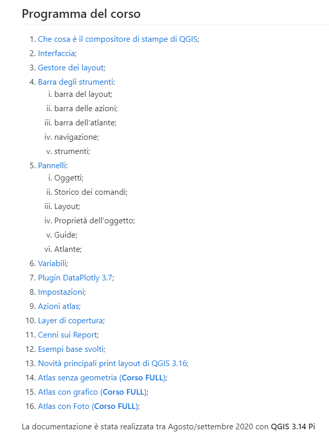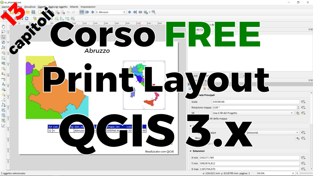 Il corso sul Print Layout di QGIS 3.x è caratterizzato da 13 capitoli (lezioni) più altre 3 capitoli con esempi svolti.