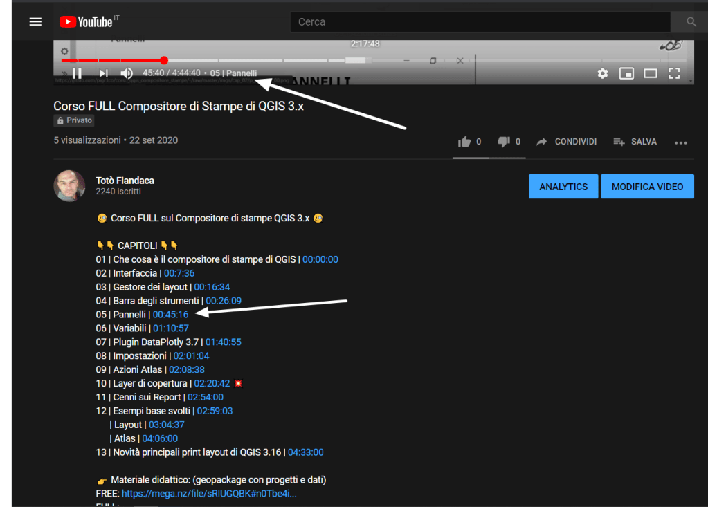 Sono due video (il primo di 13 capitolo, il secondo sono tre capitoli di esercitazioni) anche qui i marcatori di capitolo: