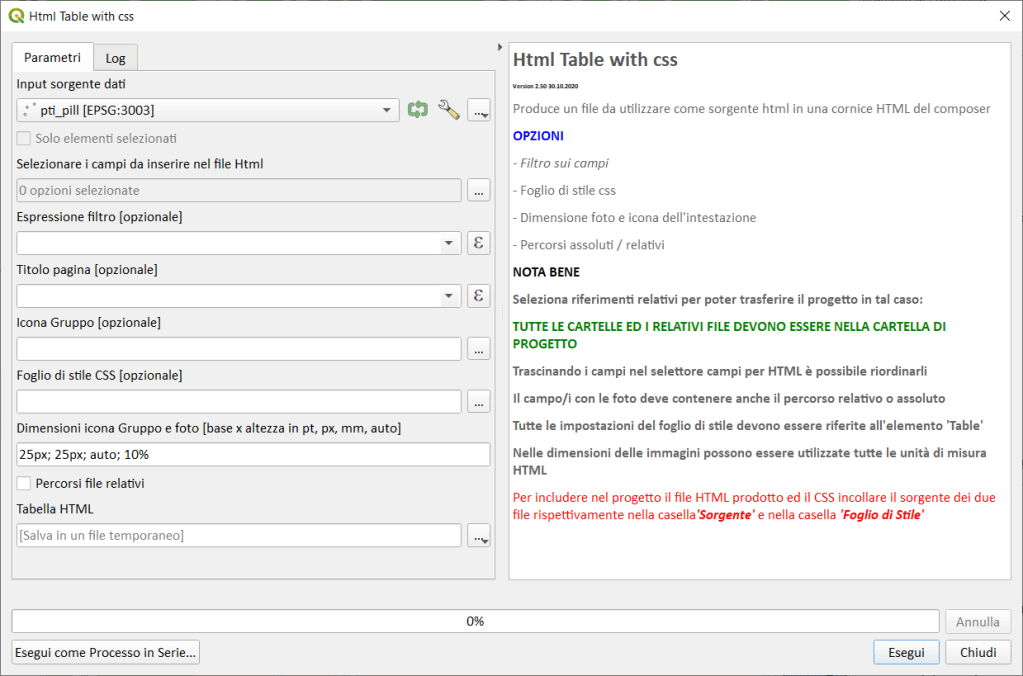 - l’ HTML è possibile utilizzarlo e/o memorizzarlo direttamente nel file di un progetto QGIS, cioè utilizzarlo nel print layout all’interno di una cornice HTML con relativo CSS,(per maggiori dettagli vedasi video demo);