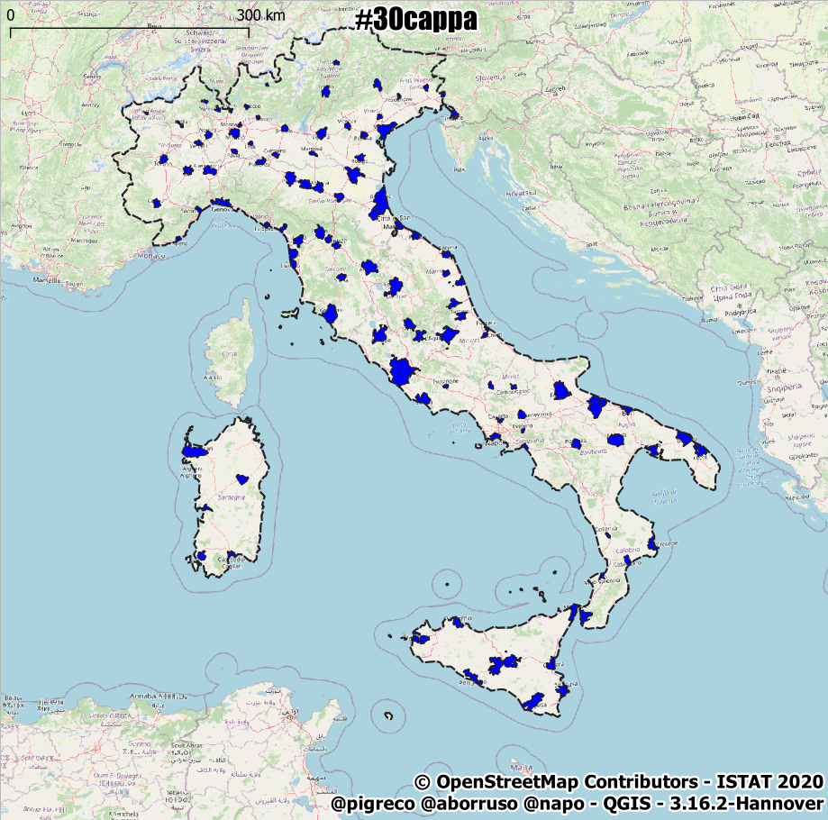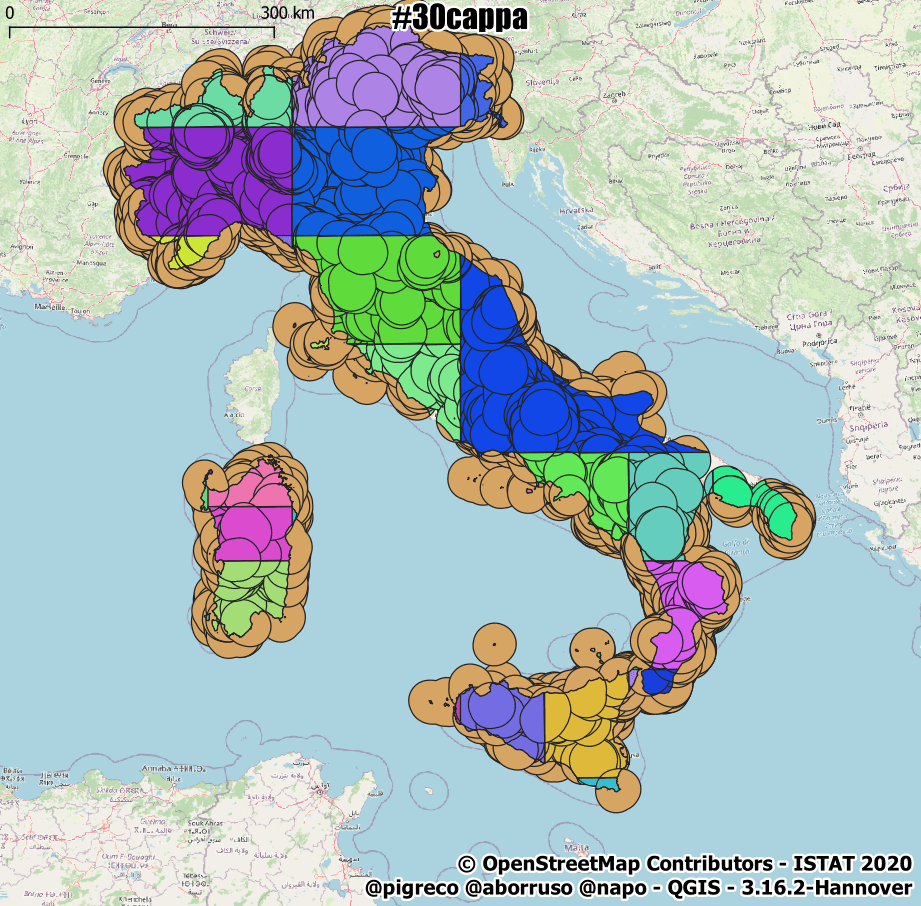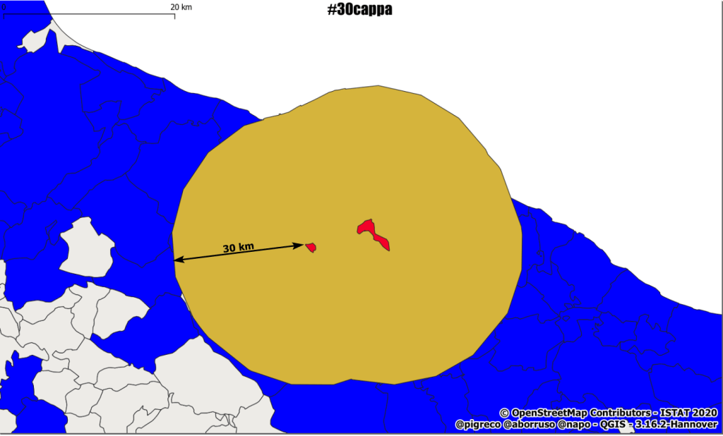 dai buffer 30 km sagomati con lo stivale, taglio i capoluoghi di provincia