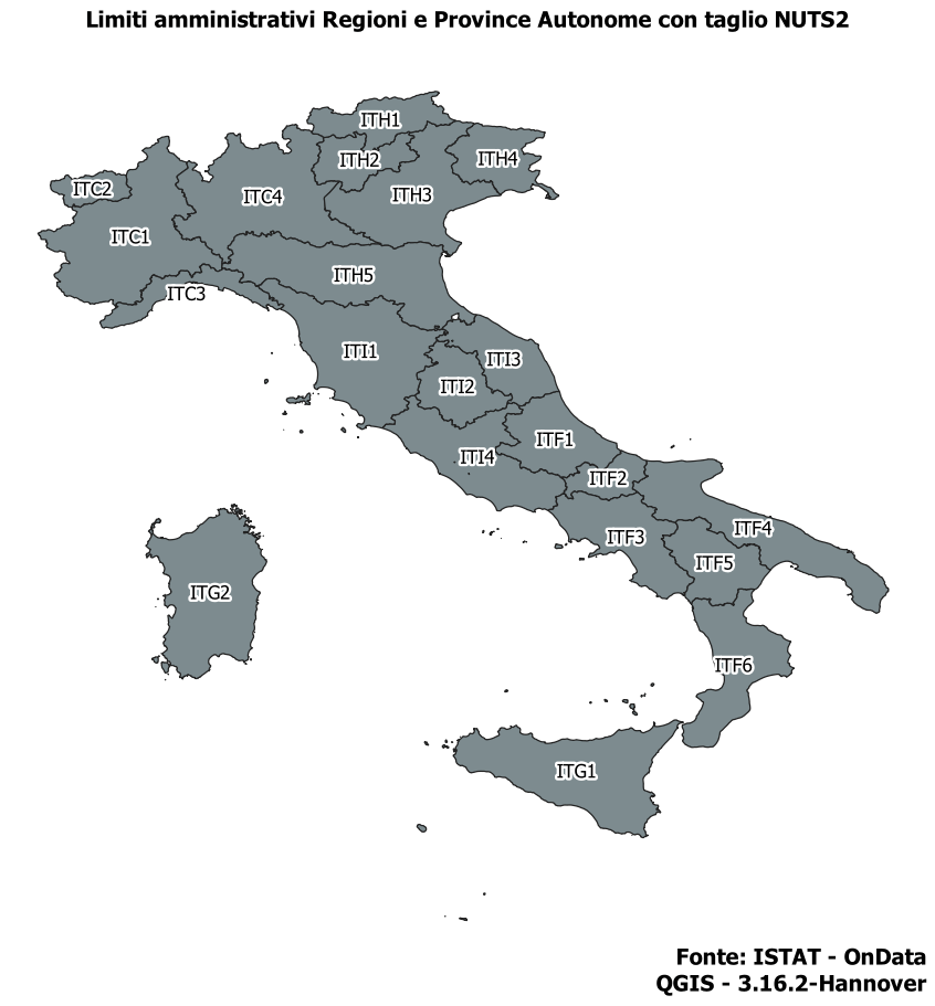 Come si evince dal testo, l’ISTAT non pubblicherà i file geografici con taglio NUTS2, almeno per il momento!.