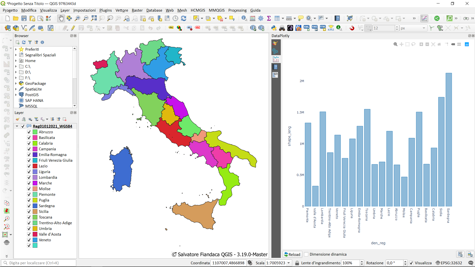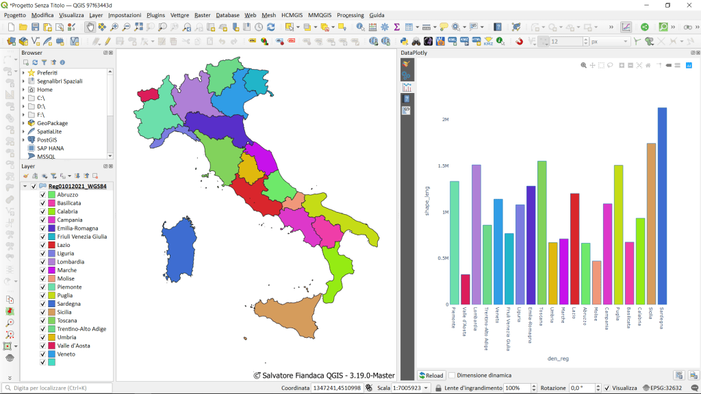 Ormai tutti conosciamo il famoso plugin per QGIS che permette di creare bei grafici (interattivi), non solo nella map canvas, ma anche nel compositore di stampe e atlas. Tra le mille opzioni, del plugin DataPlotly, vi è quella di associare dei colori ai grafici: ma se i colori li volessimo prendere dalla legenda (categorizzazione)? non è semplice né immediato, in questo blog post vedremo come rendere il tutto facilissimo.