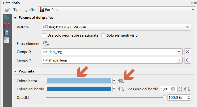 Come si vede dallo screenshot di sopra, il grafico Bar Plot ha un unico colore e per modificarlo occorre agire in questa sezione: