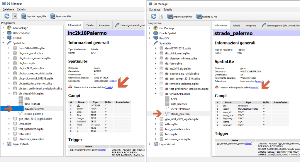 da DBManager, crea indici spaziali (passo indispensabile!) cliccando su crealo