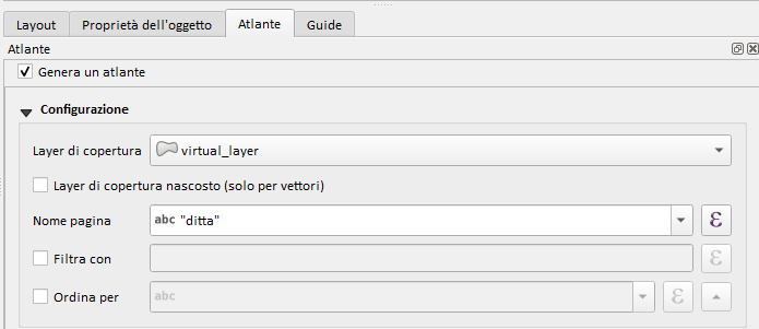 Quando creiamo l’atlante, usiamo il Virtual Layer appena creato come layer di copertura: