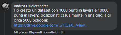 Un membro del gruppo, Andrea Giudiceandrea (grazie), ha realizzato un dataset di prova che condivido anche qui: