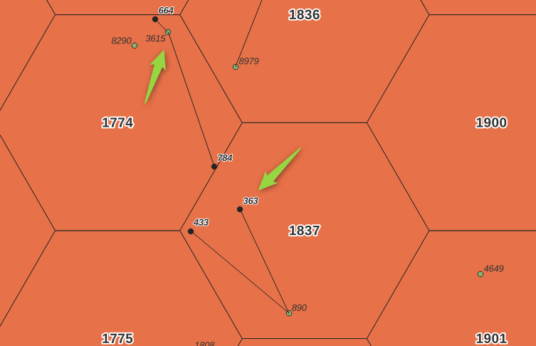 La funzione overlay_nearest() dovrebbe essere utilizzata senza il parametro max_distance:=2000 altrimenti risulta non generalizzabile e dipendente dalle dimensione dei poligoni, ma in questo caso impiegherebbe troppo tempo (circa 100 sec), quindi occorre valutare il valore in funzione delle dimensioni dei poligoni utilizzati, nel nostro caso 2000 metri vanno bene, ma solo perché abbiamo volutamente creato esagoni regolari.