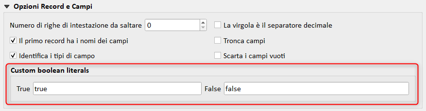 I booleani vengono rilevati anche da un file CSVT (formato GDAL/GeoCSV Integer(Boolean)).