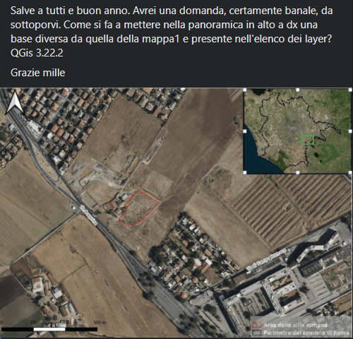 Salve a tutti e buon anno. Avrei una domanda, certamente banale, da sottoporvi. Come si fa a mettere nella panoramica in alto a dx una base diversa da quella della mappa1 e presente nell’elenco dei layer? QGis 3.22.2 Grazie mille