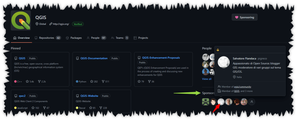 - Qui per diventare sponsor: https://github.com/sponsors/qgis , https://github.com/sponsors/OSGeo