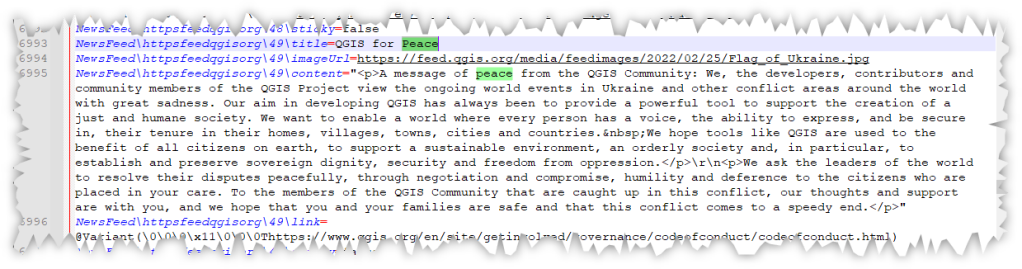 ma per chi avesse aperto QGIS prima della modifica del messaggio, non avrebbe avuto modo di leggere l’aggiornamento del messaggio in quanto, come detto prima, non è stata aggiornata la data del feed.