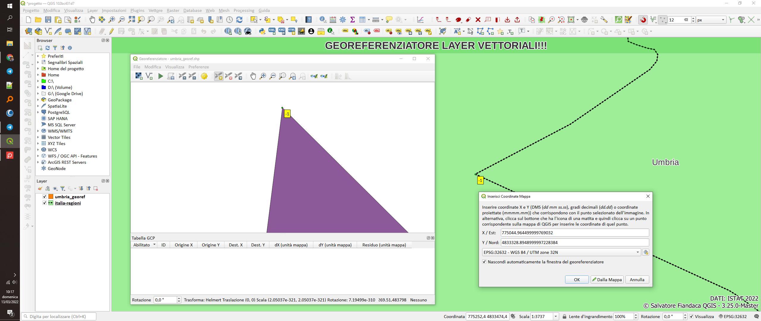 NOTE FINALI: la nuova feature è veramente facile da usare, deve essere ancora migliorata per alcuni aspetti (secondo me sarebbe utile avere gli snap dentro il georeferenziatore) ma come inizio è ottimo.