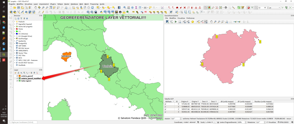 Nella prossima release QGIS 3.26 il plugin core georeferenziatore avrà la possibilità di georiferire entrambi i modelli di dati: raster e vettoriali utilizzando la stessa interfaccia: