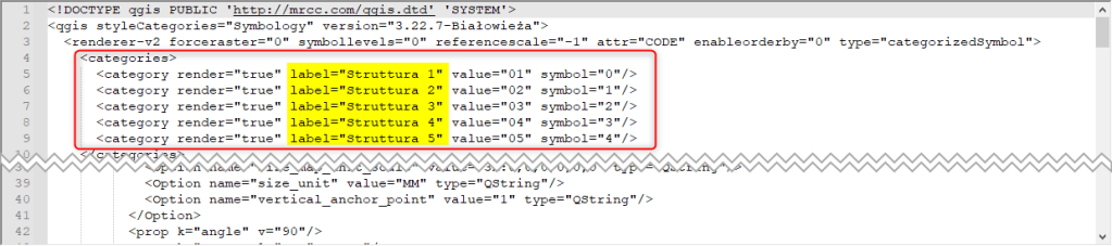 I dati presenti nel file qml non sono direttamente accessibili da QGIS, ovvero, non esiste una funzione che permetta di accedere, in modo semplice, ai dati delle tematizzazione come: colore, simbolo e label, occorre necessariamente scrivere dei piccoli script in pyQGIS. Quindi contatto un caro amico (Giulio Fattori, che ringrazio per la disponibilità) che in brevissimo tempo crea una funzione personalizzata che permette di estrarre le decodifiche.