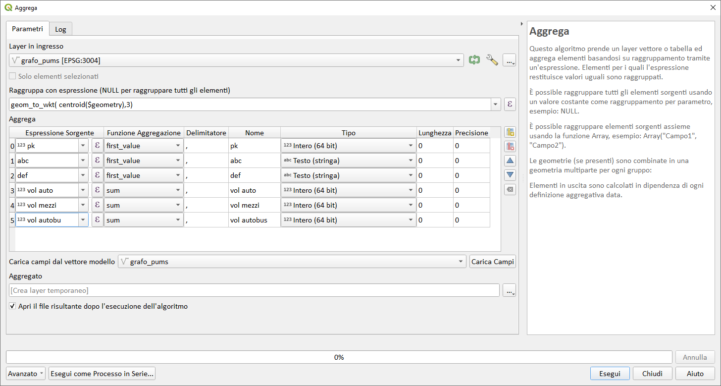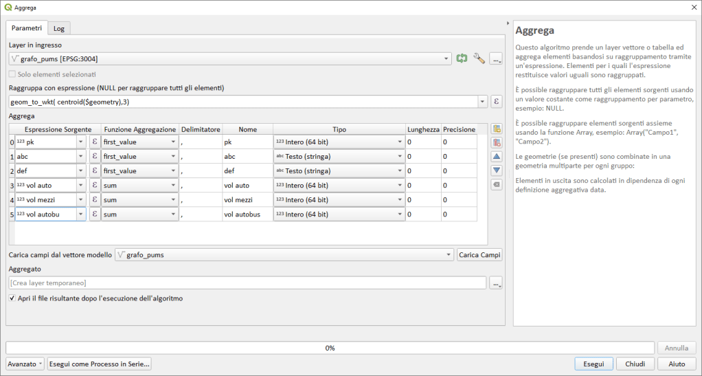 Algoritmo AGGREGA di QGIS 3.26 Buenos Aires