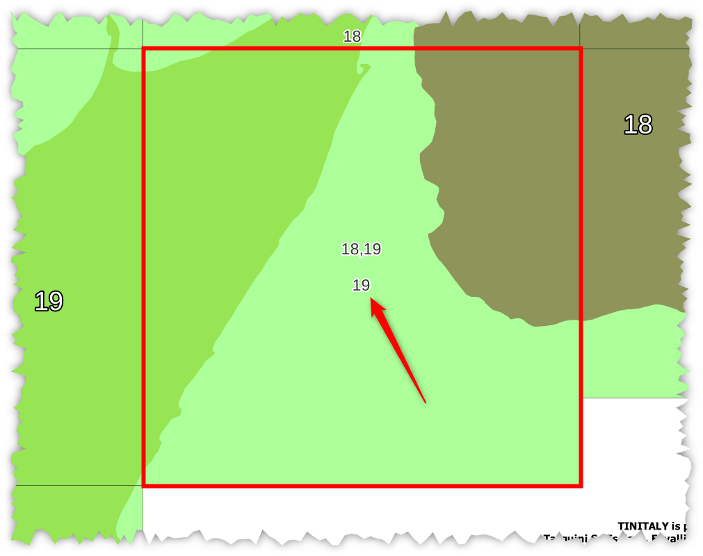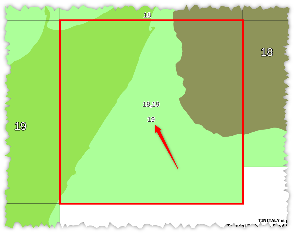 all’interno del riquadro (rosso) ricade una porzione di territorio siciliano (cod_reg=19) e una porzione del territorio calabrese (cod_reg=18): assegnare al riquadro il cod_reg corrispondente alla porzione con area maggiore, in questo caso, la porzione di territorio siciliano è maggiore di quello calabrese.