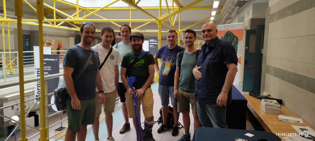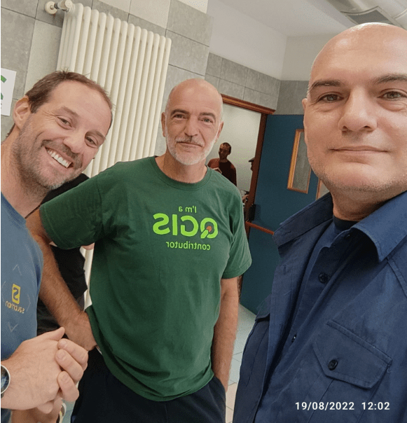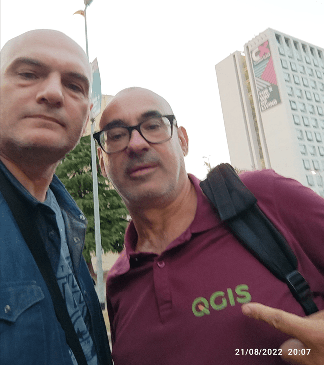 Quando ho fatto la foto con Tim, lui mi ha detto: “Grazie per tutto il lavoro che hai fatto e fai per il repository di QGIS“. Questo mi ha particolarmente emozionato, perché sentirsi riconoscere da Tim il lavoro svolto è molto appagante. Sotto qualche instante prima della foto con Tim: